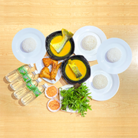 Nasi Putih 4, Patin Sangkar Tempoyak 2, Pais Patin 2, Ulam Daun 3, Sambal Tempoyak 2, dan Air Mineral 4