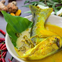 2 pieces of frozen patin come with ingredients such as tempoyak, vietnamese coriander leaves, and old chinese cucumber