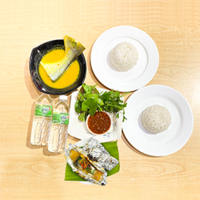 Nasi Putih 4, Patin Sangkar Tempoyak 2, Ayam Kampung Goreng 2, Ulam Daun 3, Sambal Tempoyak 2, dan Air Mineral 4