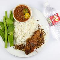 Nasi Putih, Ayam Goreng Berempah, Ulam, Sambal Belacan dan Air Mineral